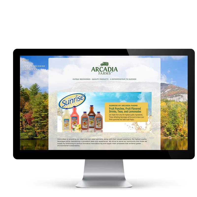 ArcadiaFarms.com is a fully responsive informational website used to provide retailers with the information necessary to make decisions about reselling the Arcadia Farms line of fruit juices, teas and energy drinks.